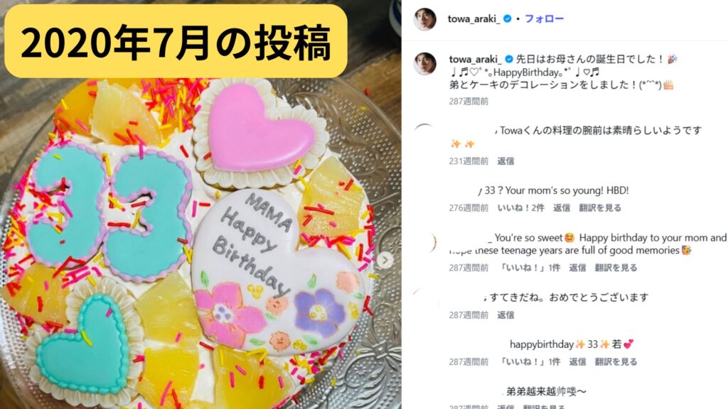 2020年7月にお母様の33歳の誕生日を