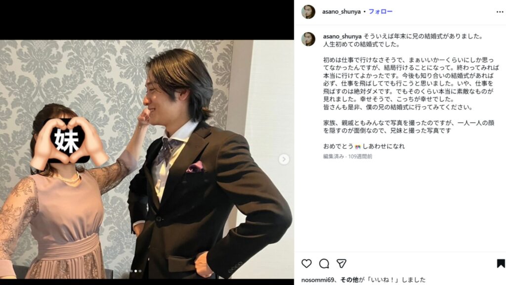 お兄様は、2023年にご結婚されているそうです。
