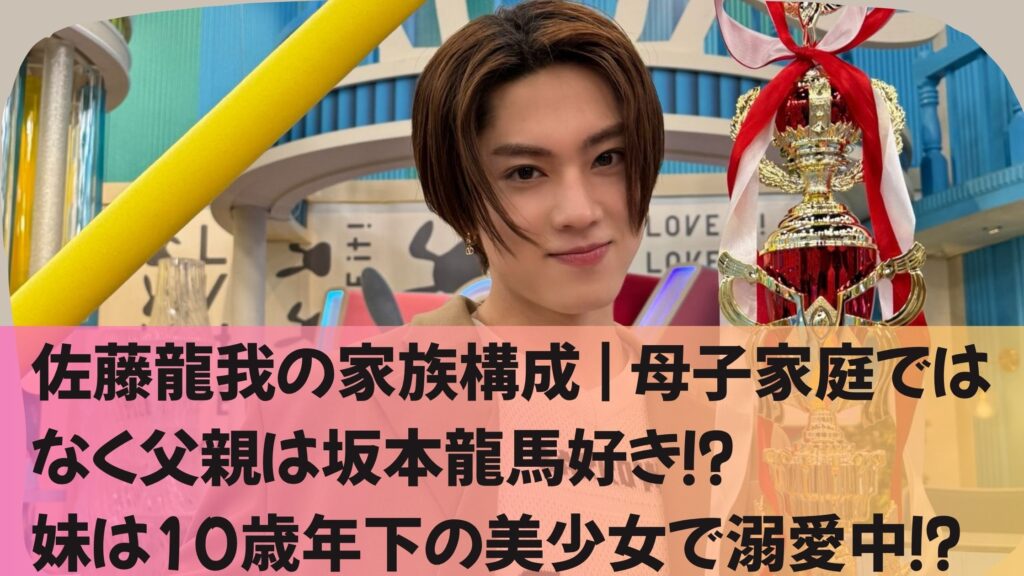 佐藤龍我さんは、中学2年生で元ジャニーズ事務所に入所、現在は5人組アイドルグループ「ACEes」のメンバーとして活躍しています。ドラマや舞台など幅広く活躍中です。この記事では、龍我さんの父親・母親・弟・妹のエピソードを紹介します。 佐藤龍我の家... -