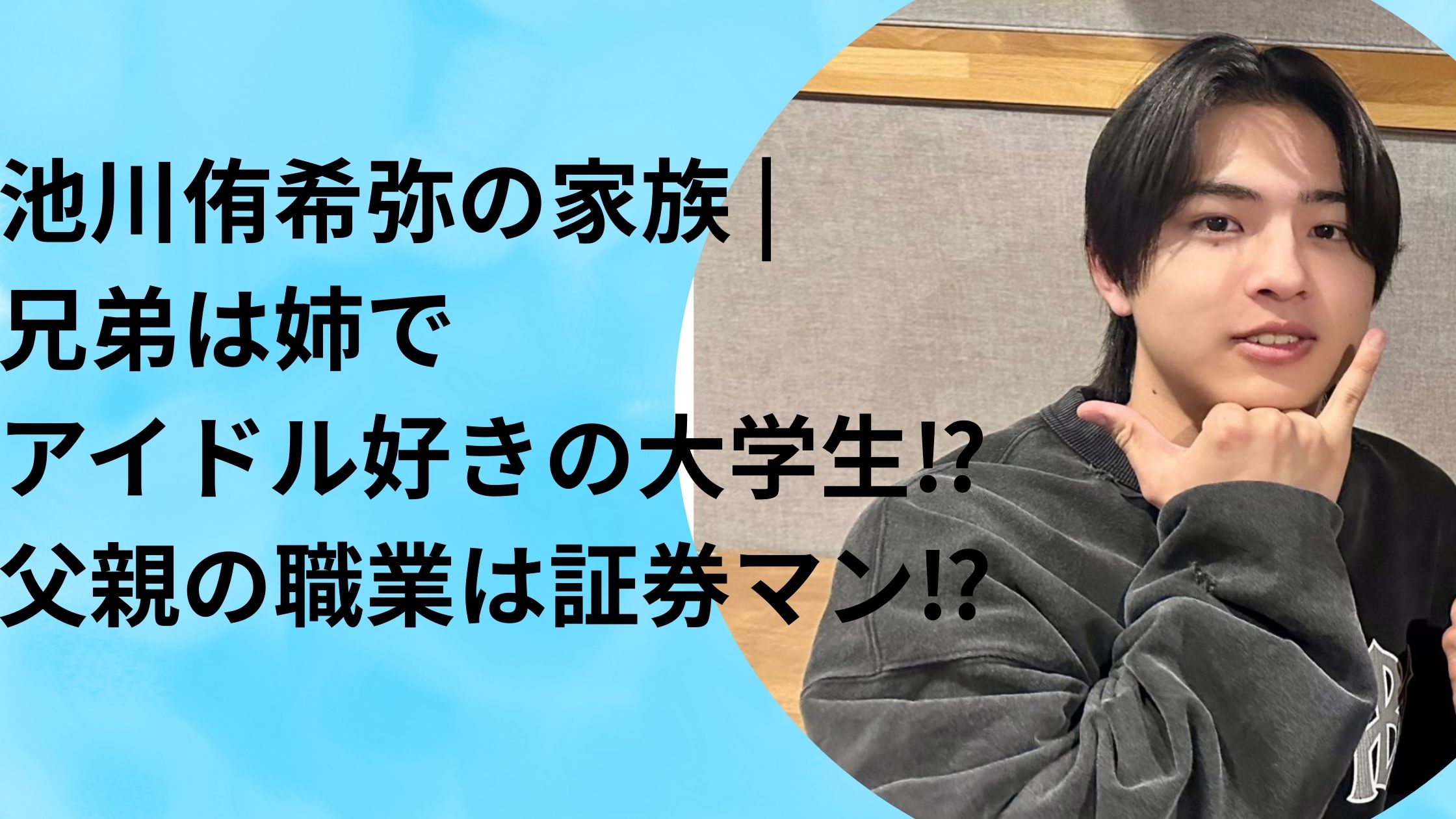 池川侑希弥の家族 | 兄弟は姉でアイドル好きの大学生⁉父親の職業は証券マン⁉