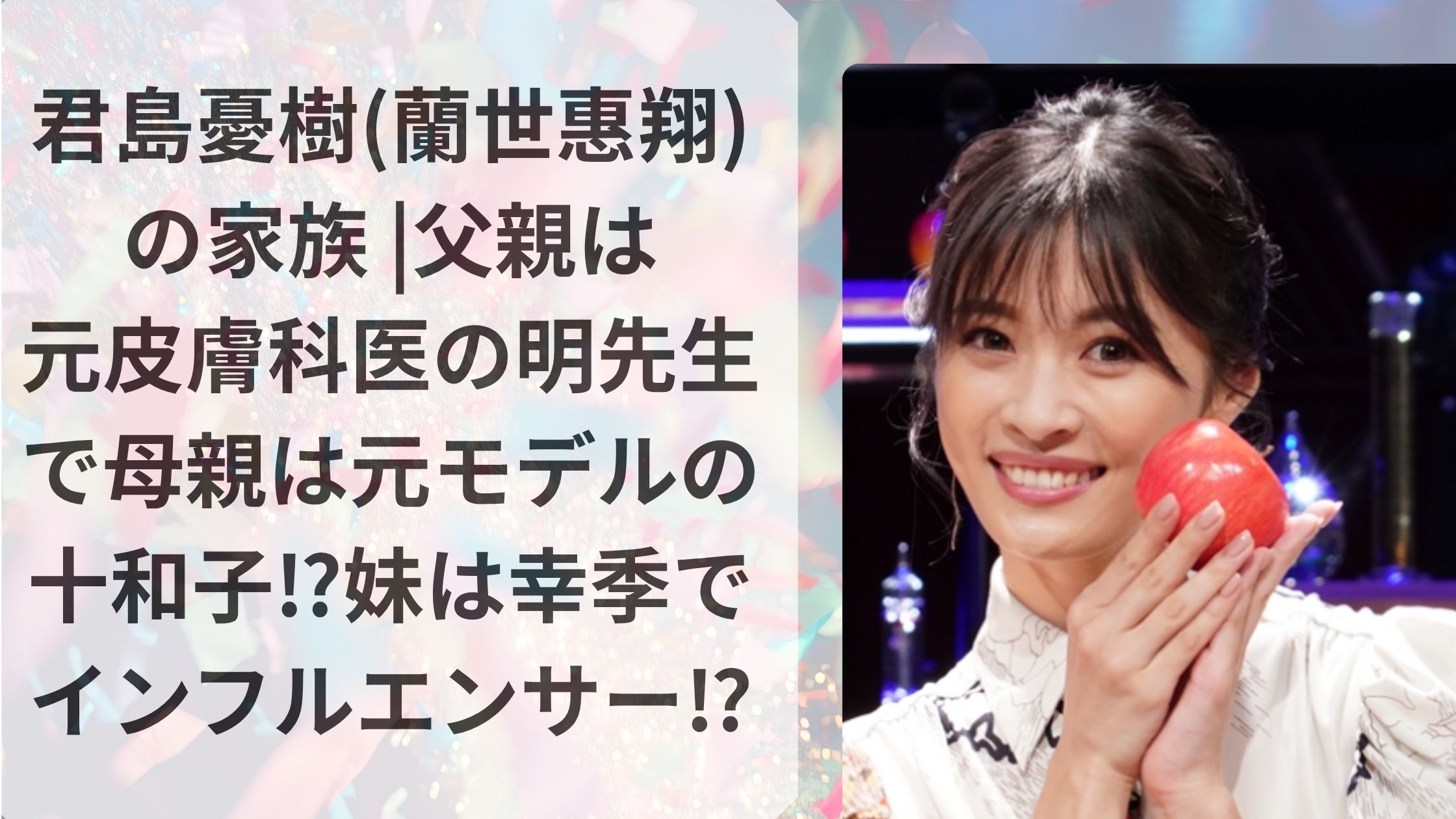 君島憂樹(蘭世惠翔)の家族 |父親は元皮膚科医の明先生で母親は元モデルの十和子⁉妹は幸季でインフルエンサー⁉