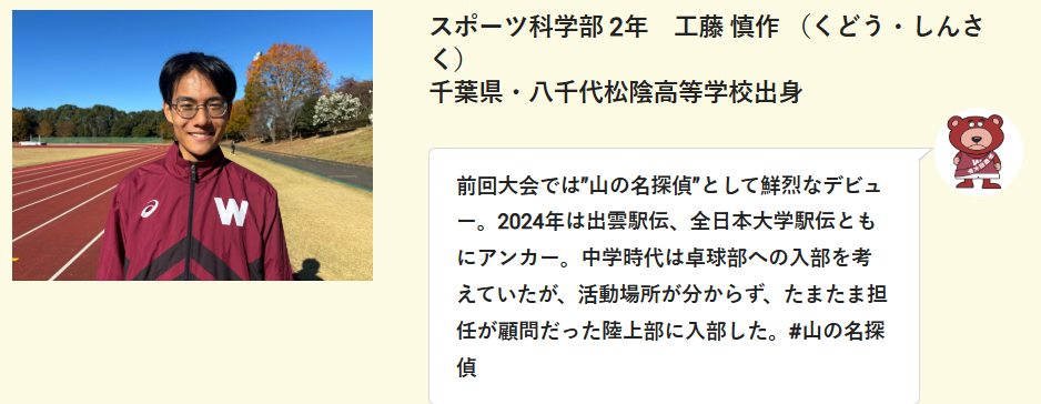 参考:「すごく気に入っている」早稲田大“山の名探偵”工藤慎作は呼び名に愛着 名前の由来、フィニッシュのポーズを明かす(日テレNEWS NNN) – Yahoo!ニュース