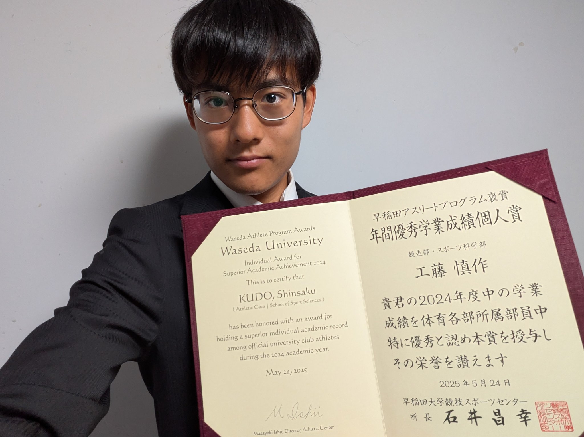 大学でも年間優秀学業成績個人賞を受賞されているそうです。