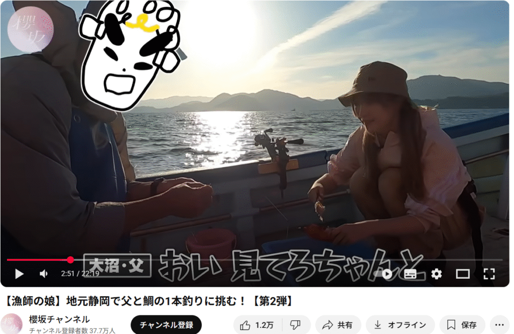 お父様と晶保さんが一緒に釣りをする動画が公開されていました。