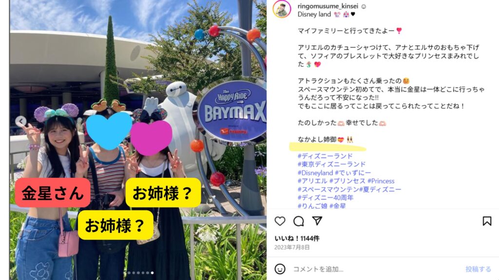 2人のお姉様と思われる女性と写っている写真を投稿されています。
