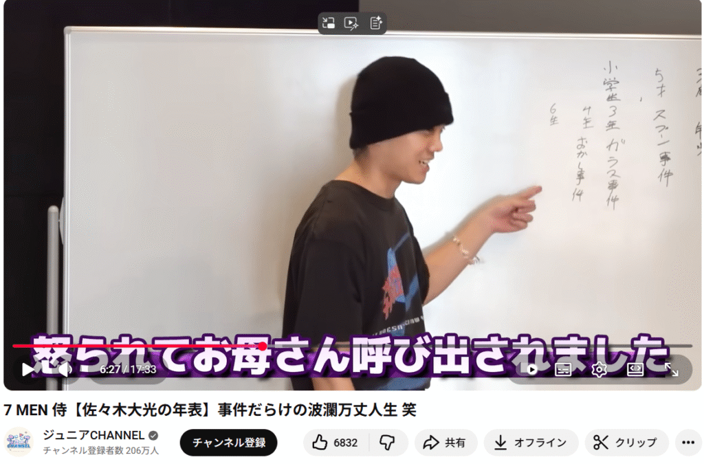YoutubeジュニアCHANNELでも、過去の様々な事件を話されていました。