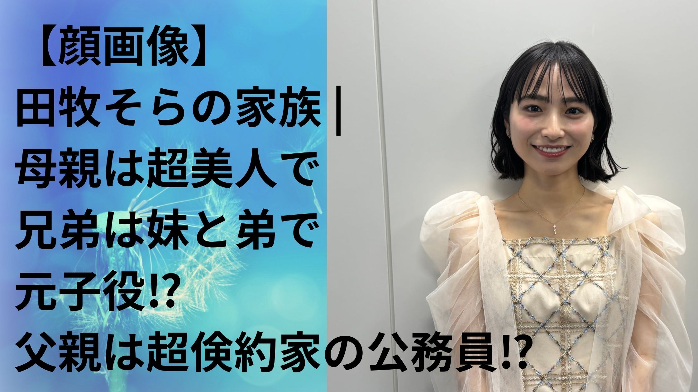 【顔画像】田牧そらの家族 |母親は超美人で兄弟は妹と弟で元子役⁉父親は超倹約家の公務員⁉