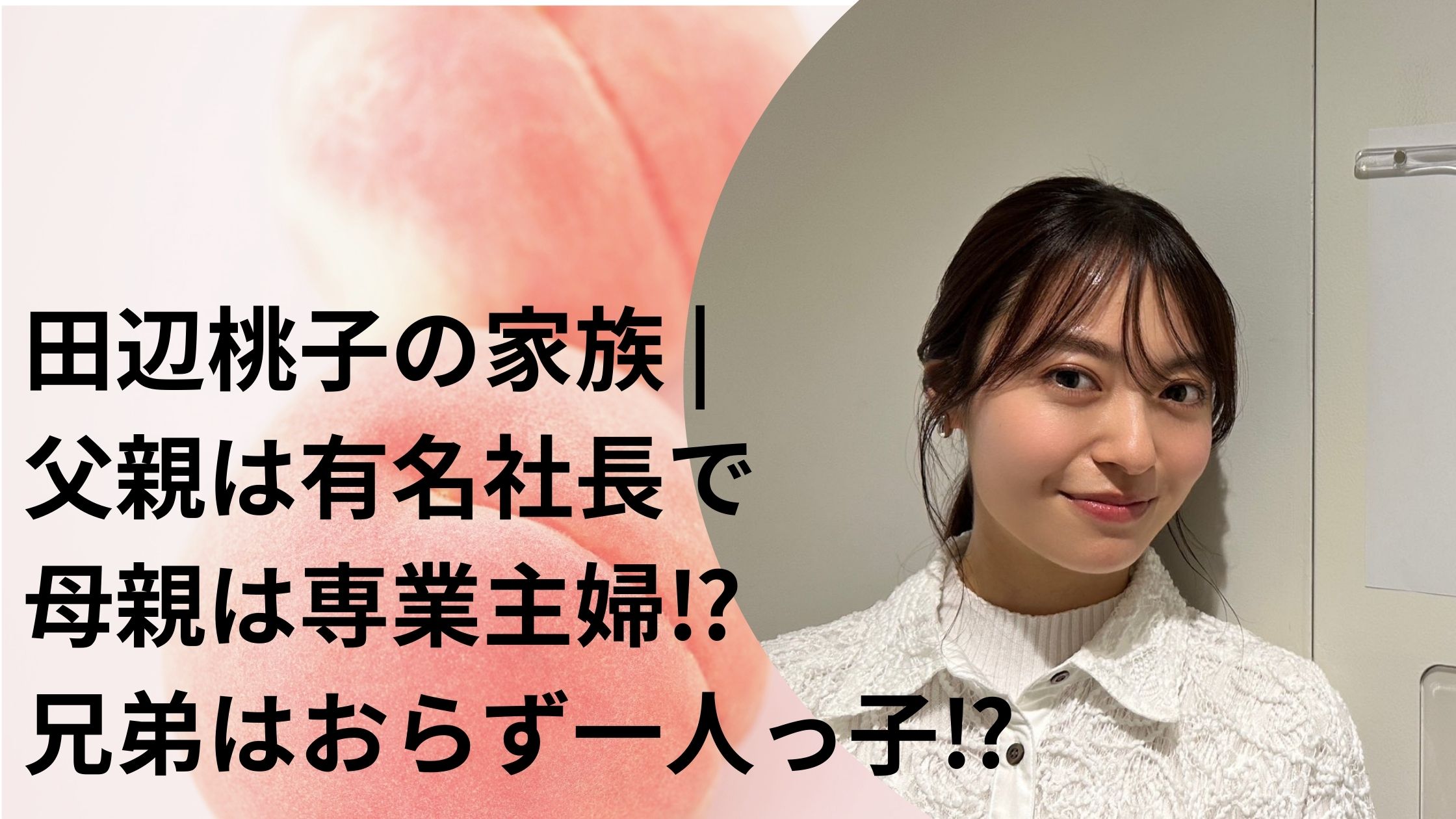 田辺桃子の家族 | 父親は有名社長で母親は専業主婦⁉兄弟はおらず一人っ子⁉