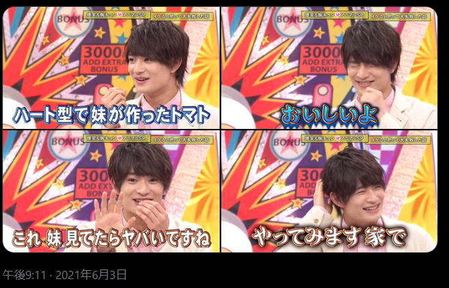妹が育てたトマトは「おいしいよ」と食べた - 妹はACEesの佐藤龍我さんが好きで、