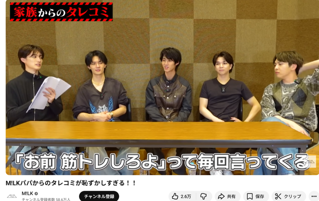 山中柔太朗さんは、5人組ダンスボーカルグループ「M!LK」のメンバーとして活躍中。