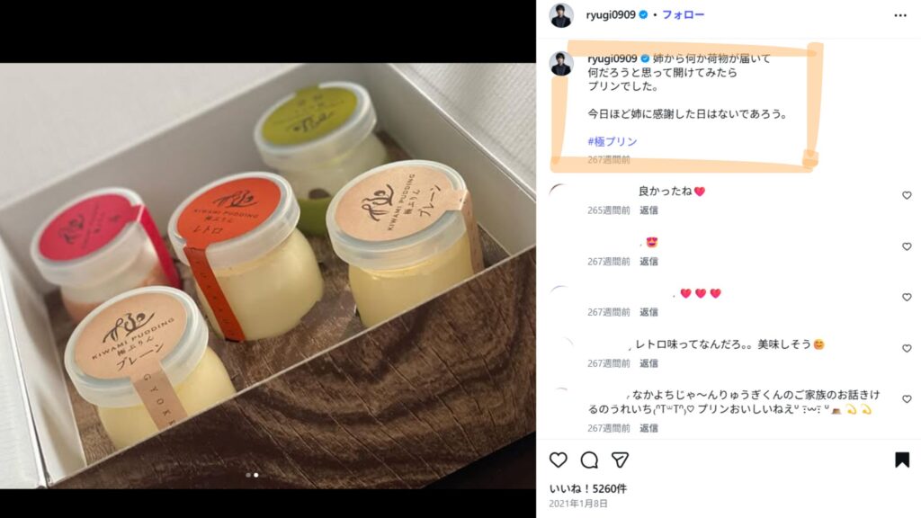 プリン好きの龍儀さんに贈り物をすることもあるそうです。